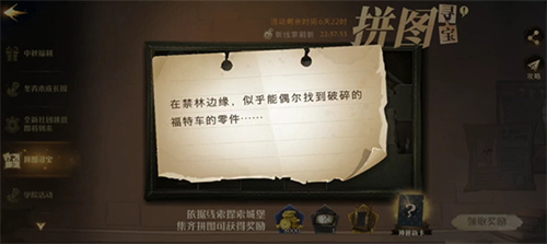哈利波特魔法觉醒里面在禁林边缘;似乎能偶尔找到破碎的福特车的零件是9.29的拼图寻宝线索,今天是拼图寻宝的第七天,但是玩家们还不知道线索,今天就和小编一起来看看哈利波特在禁林边缘任务详情一览。